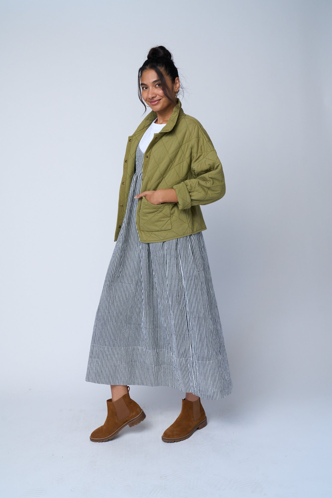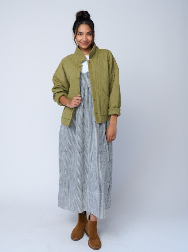 Effortlessly stylish, this 100% GOTS-certified organic cotton dress embodies seasonless versatility. Designed with a relaxed fit and thoughtfully placed pockets, it’s easy to layer with a jacket or cozy sweater, or wear on its own. Featuring a slight V-neck and above ankle-length silhouette, this fully lined dress transitions seamlessly between occasions—perfect for work, brunch with friends, or adding a touch of casual elegance to your everyday, even at the beach.