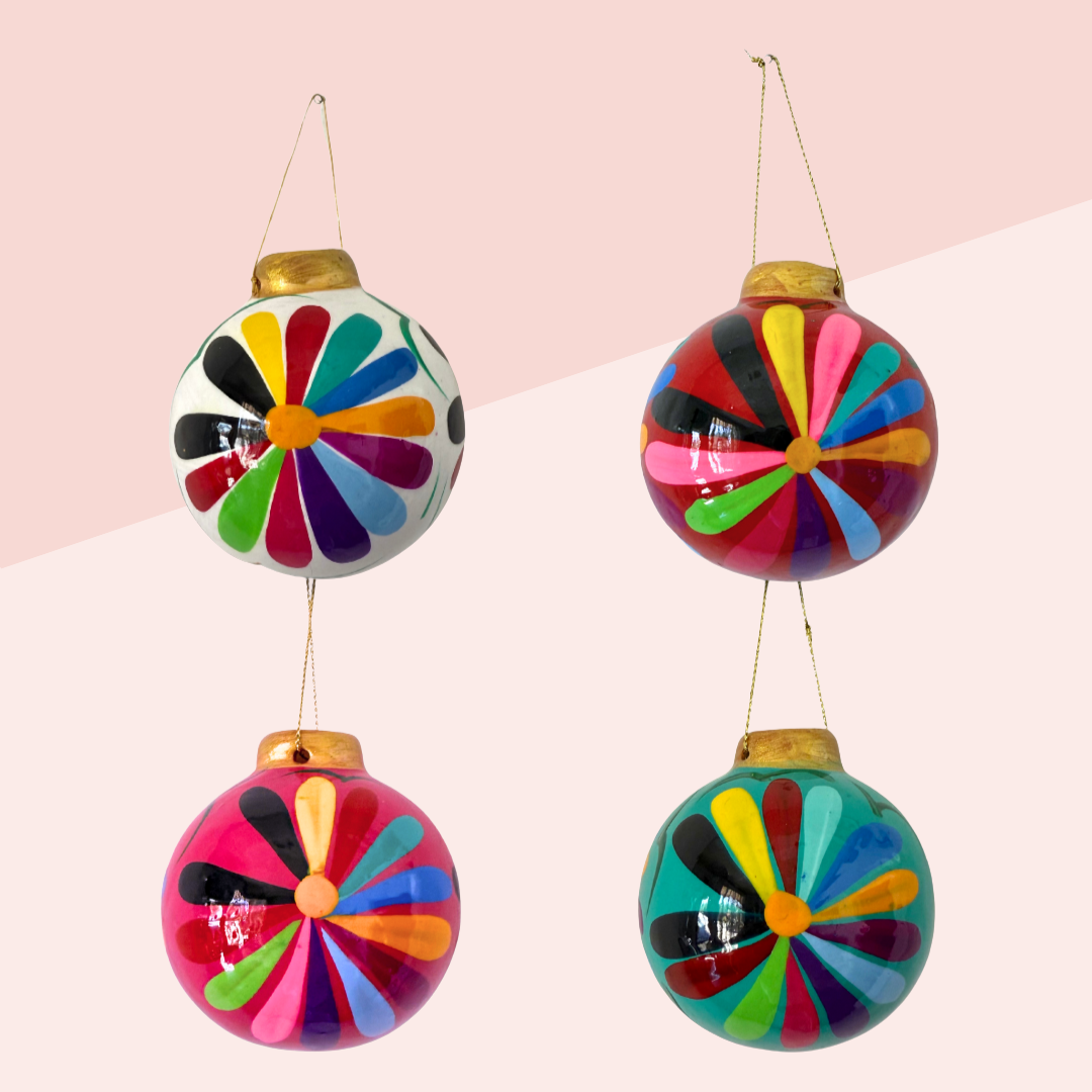 Meet this exquisite, hand-painted ceramic orb ornament, lovingly crafted by Artisan Cecilia in Mexico. Each delicate brushstroke and vibrant color choice reflects Cecilia's passion for traditional Mexican artistry. This one-of-a-kind treasure measures 2.5" wide, perfect for decorating or gifting. Your purchase directly supports Artisan Cecilia and her community, promoting the preservation of traditional Mexican craftsmanship and empowering fair trade practices.