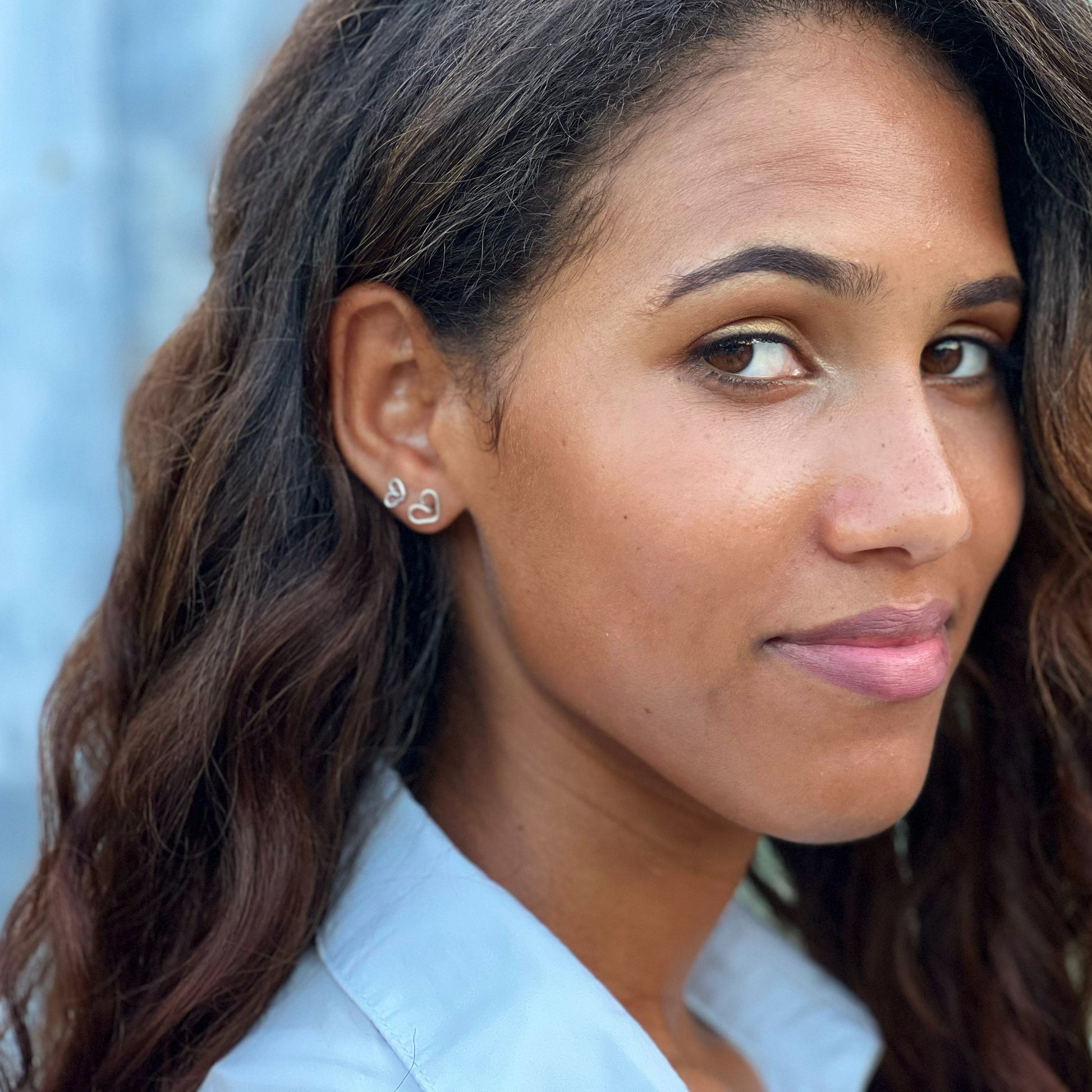 These Heart Studs are uniquely handmade by Erica from a single piece of sterling silver. Choose from two sizes to complete any look. Wear both for a double dose of subtle elegance.