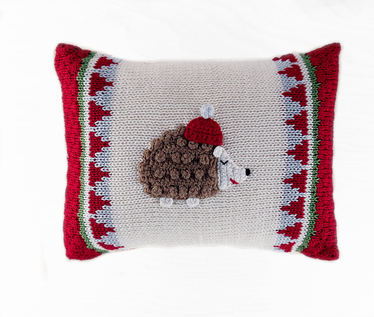 Add a touch of holiday cheer to your home with this charming little knit throw pillow featuring an adorable hedgehog bundled up in a cozy hat. The soft, handcrafted design and festive colors make it a perfect addition to your seasonal decor.