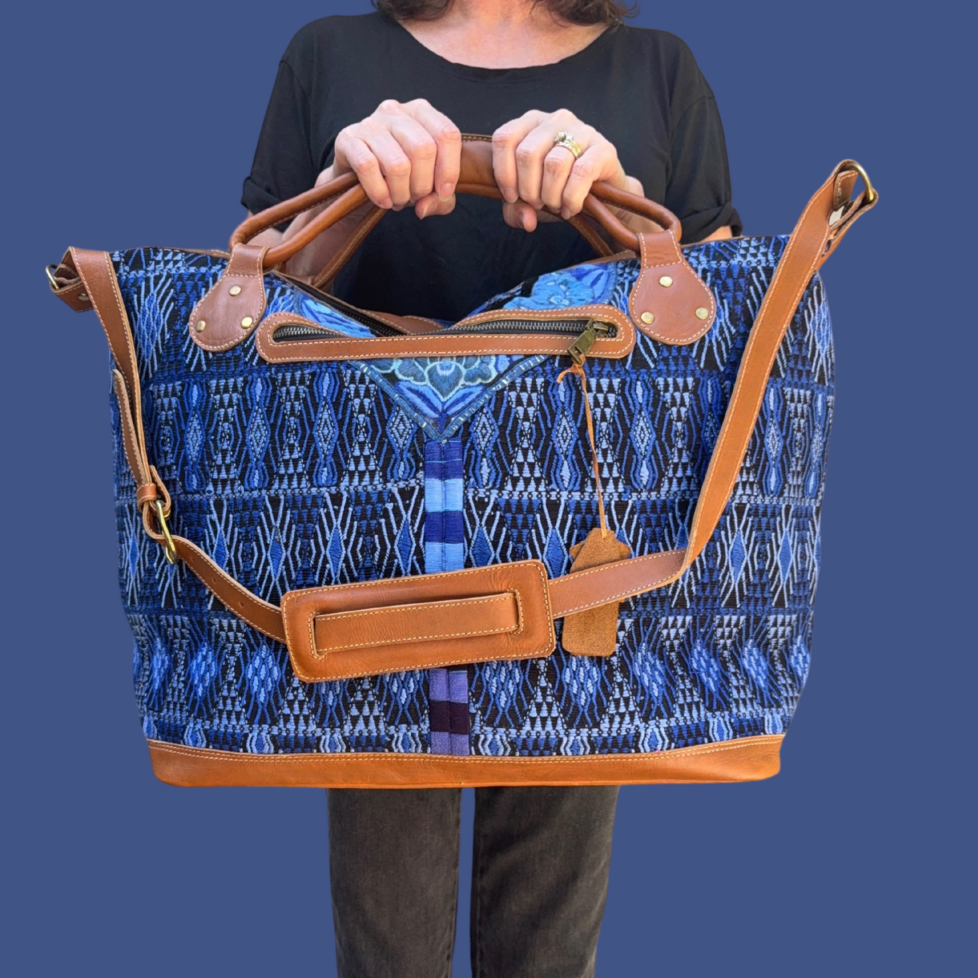 Take a break with Intertwined's stylish Huipil Weekender! This unique travel bag is made from an upcycled huipil – a traditional Mayan handwoven blouse – and is sure to be the talk of the town. Our partner's leather workshop in Guatemala transforms the huipil into a gorgeous bag, and with their attention to detail, you can be sure this artisan bag will be around for many trips to come! Bon voyage!