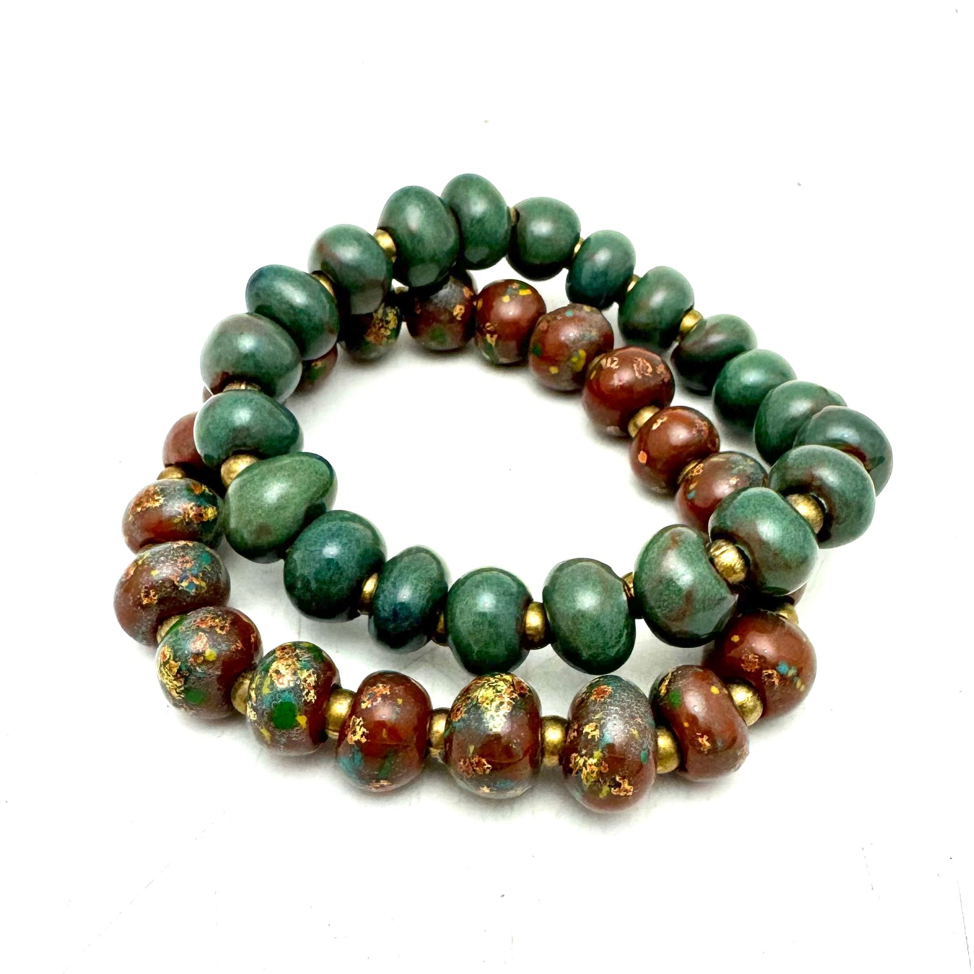 These two beautiful bracelets are made from hand-rolled ceramic beads.