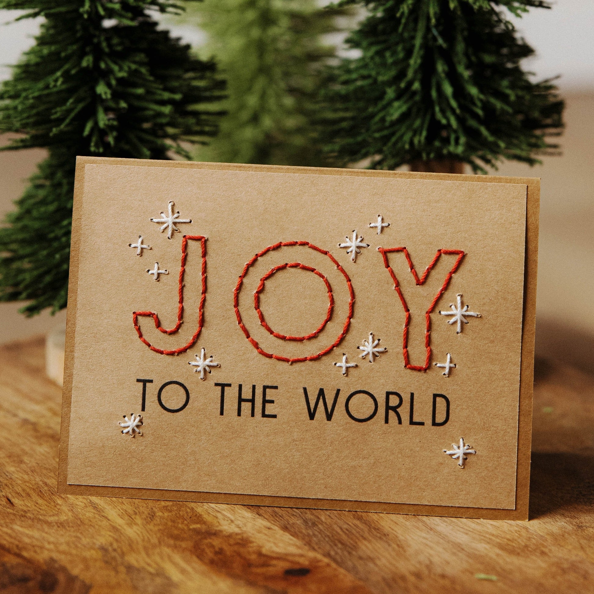 Set of 4 assorted cards with a bold stitched JOY and ivory accents.