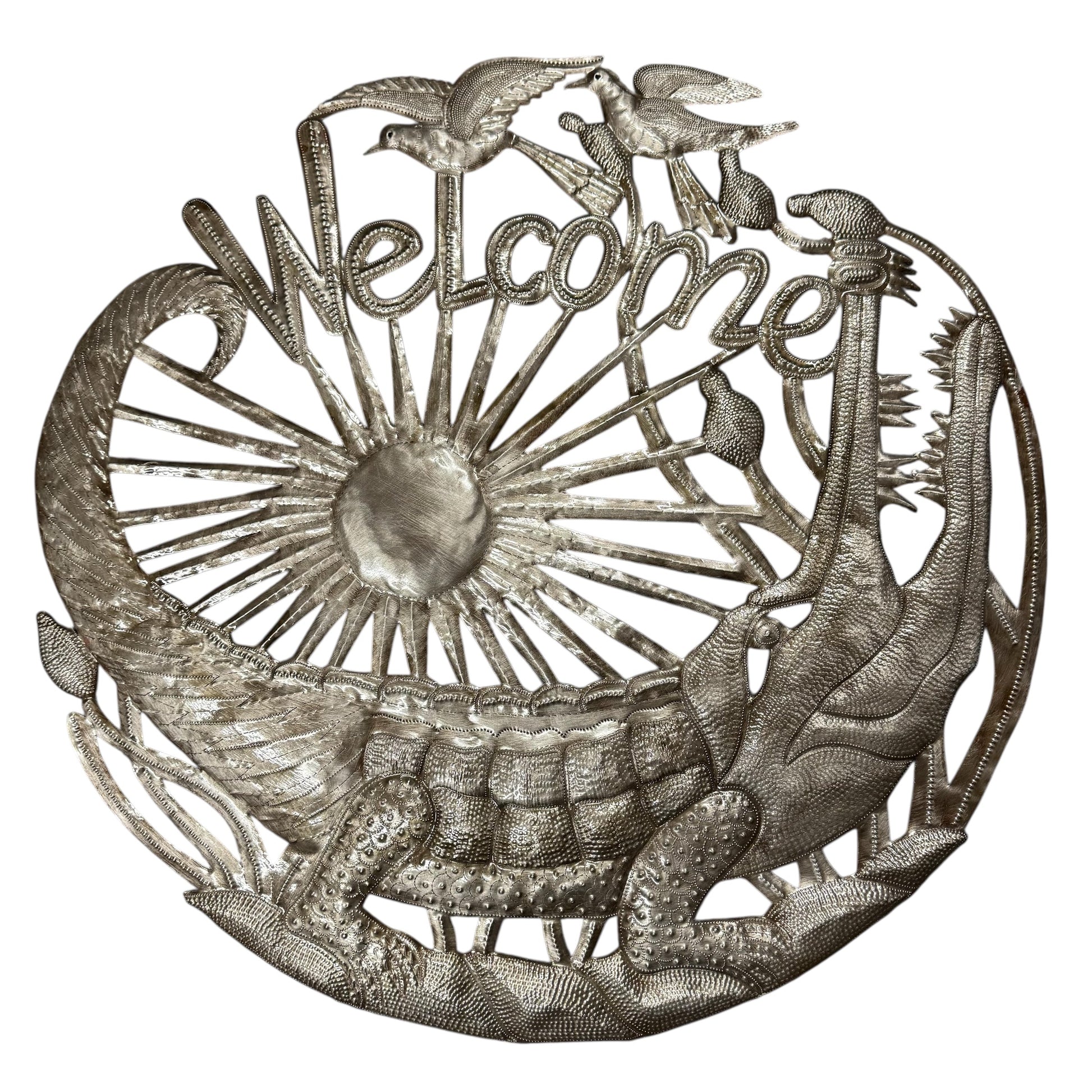 One of the most celebrated Haitian art forms, steel drum art is always a winner! Each piece is handcrafted from recycled 55-gallon drums using only a hammer and a few small tools that resemble railroad spikes. Each piece is a true work of art!