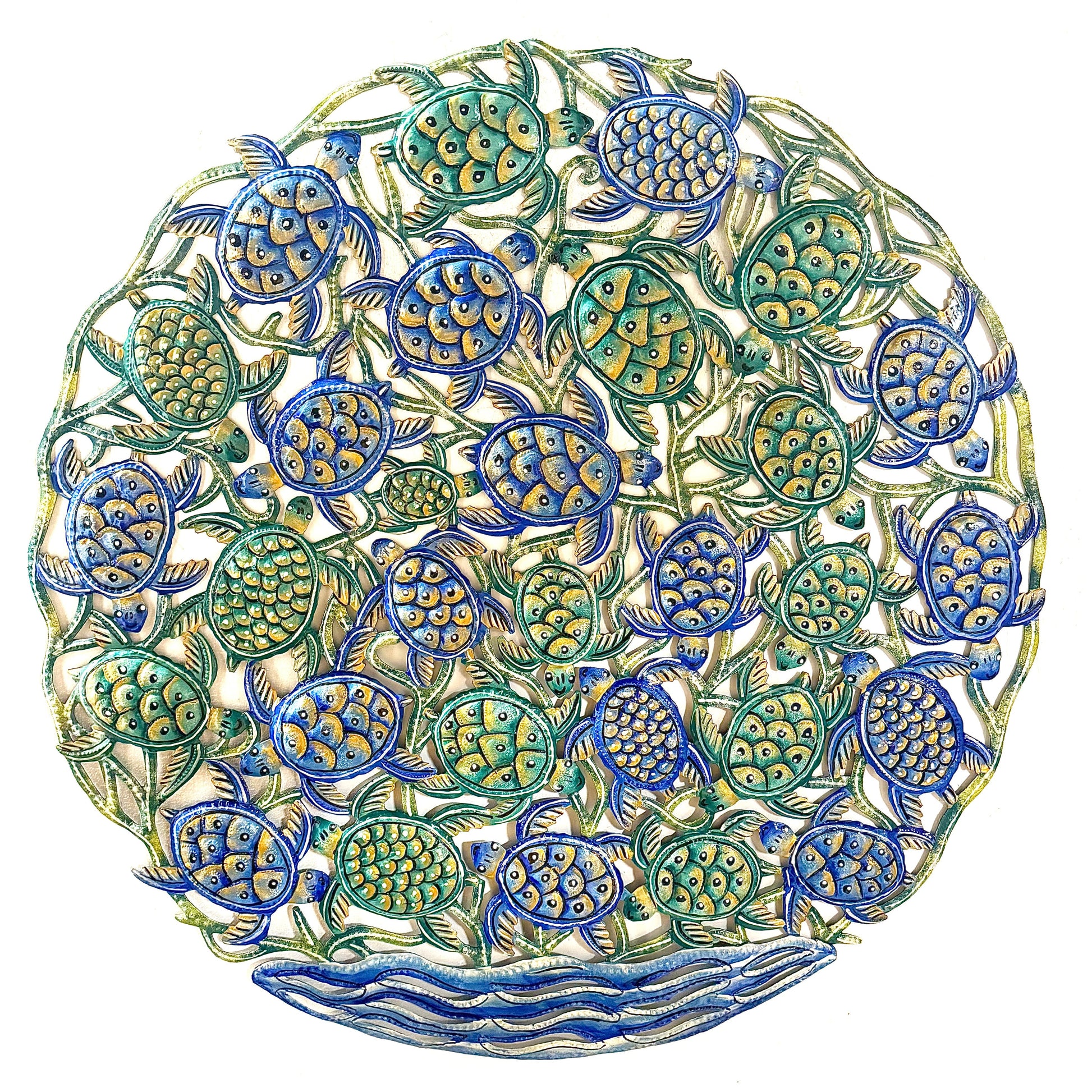 One of the most celebrated Haitian art forms, steel drum art is always a winner! Each piece is hand crafted from recycled 55 gallon drums using only a hammer and a few small tools that resemble railroad spikes. Each piece is a true work of art!