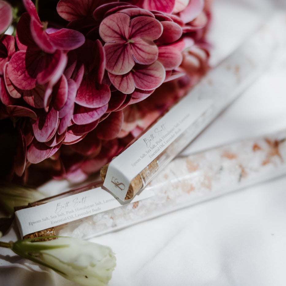 Indulge yourself in a pampering spa treatment in the comfort of your home. Relax sore muscles, drain stress, and nourish your senses with our luxurious bath salts. Our salts are infused with lavender essential oil and hand mixed in small batches with dried lavender buds.
