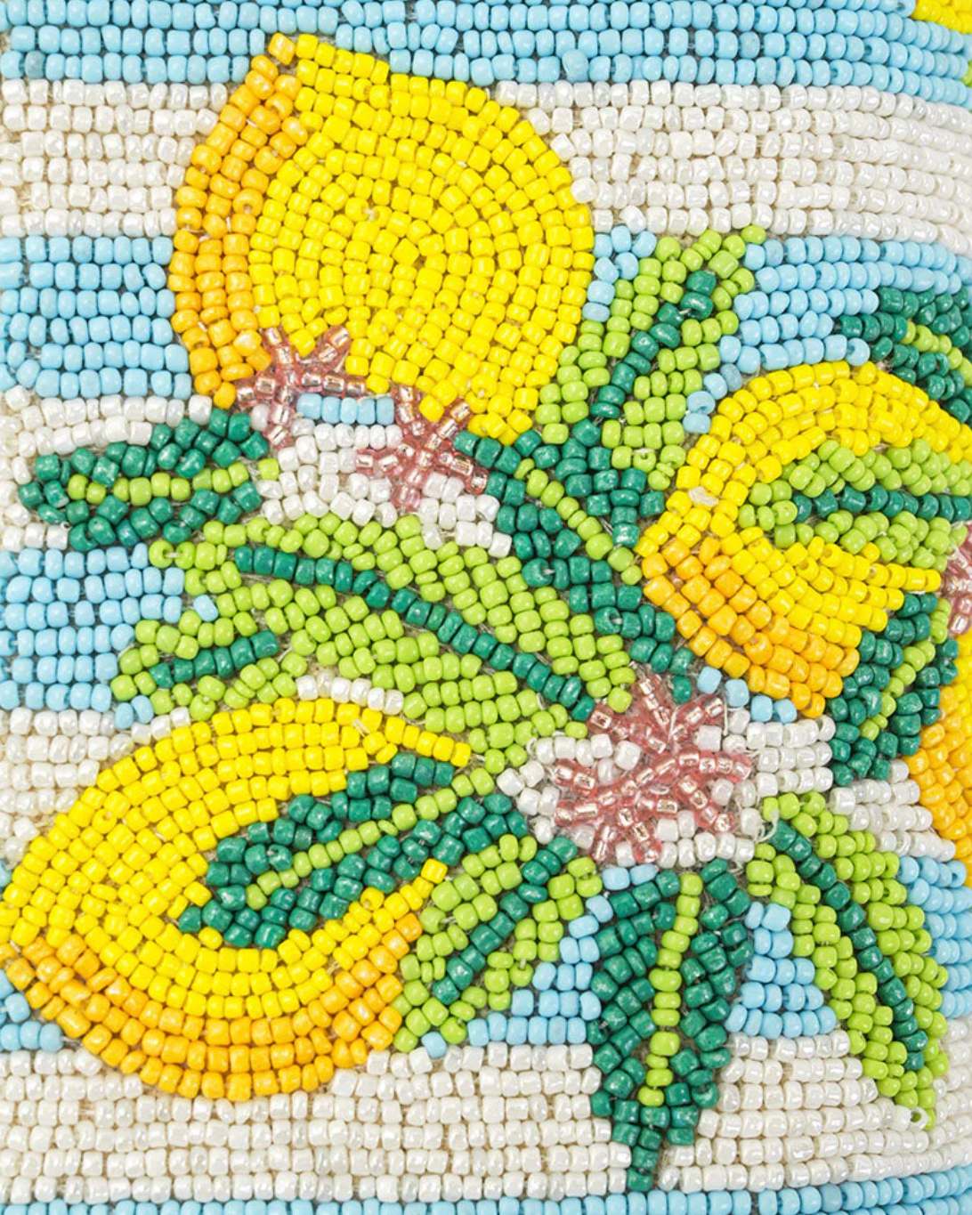 - Structured shoulder bag featuring lemon bunches with blue and white stripes embellishment all over