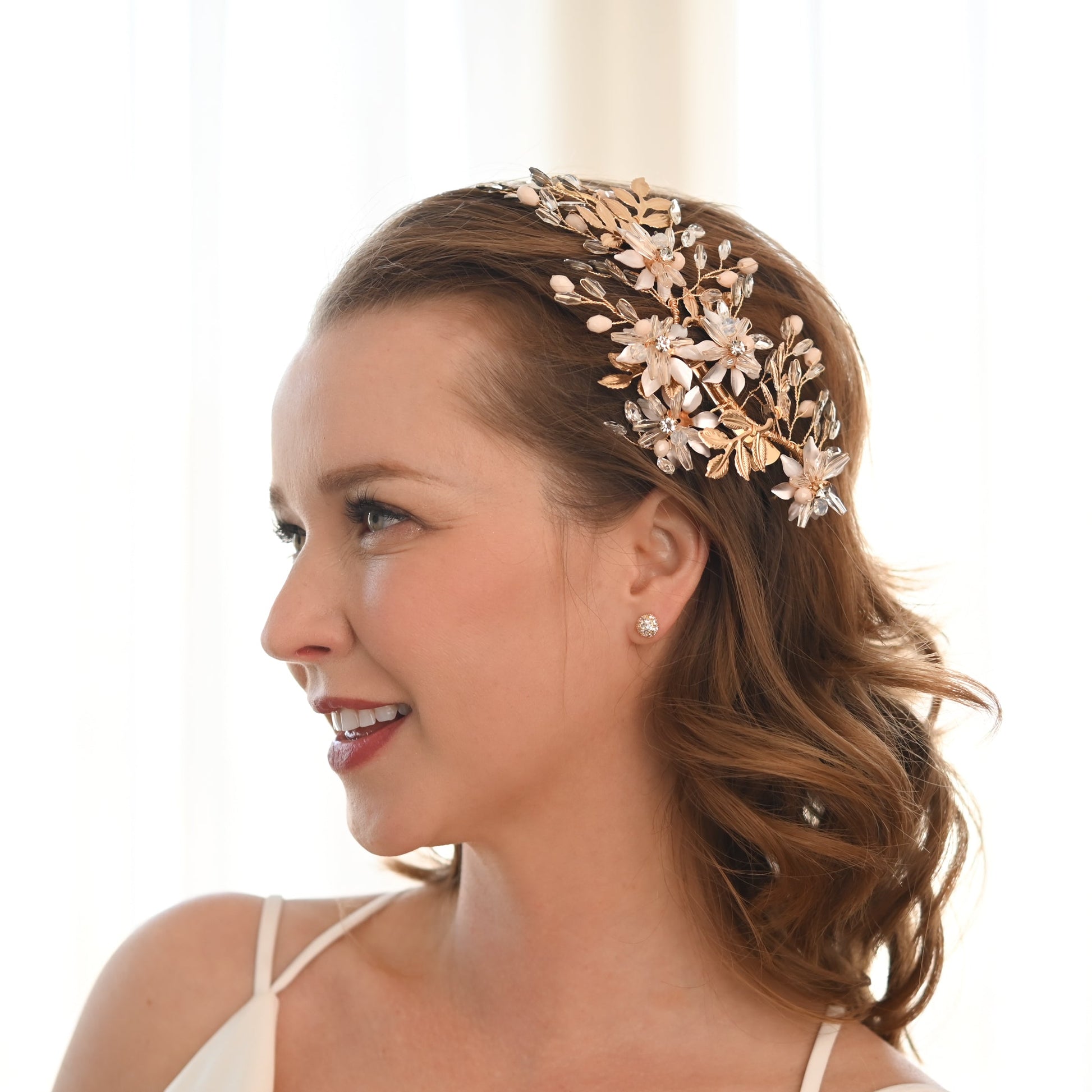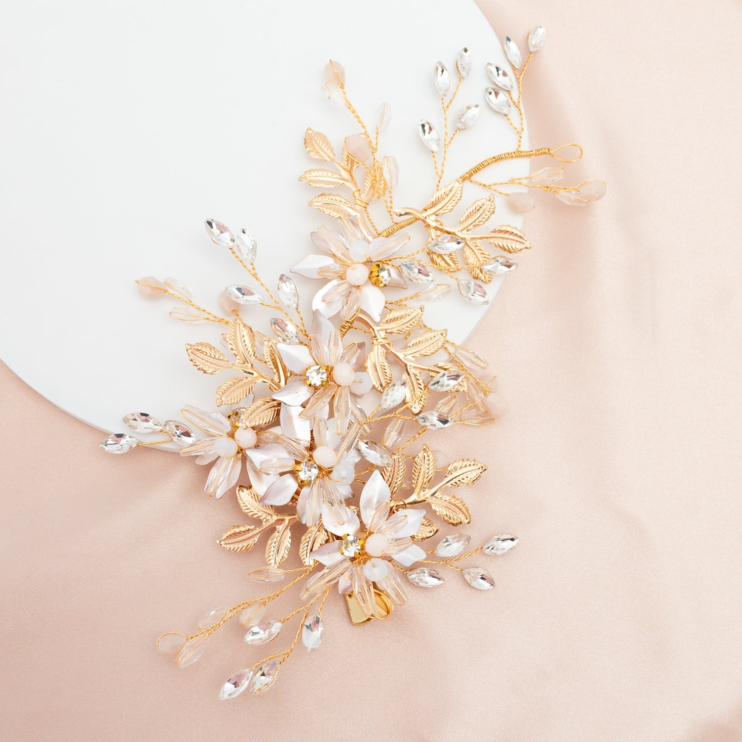 Elevate your bridal elegance with the ethereal beauty of our Magnolia Hair Clip. Glimmering crystal and pearl beads rest at the center of sculpted 14K plated gold petals, exuding delicate femininity. Lightweight and easy to style, this floral accent adds a touch of elegance to any wedding ensemble. Let its shimmering beauty capture hearts as you walk down the aisle.