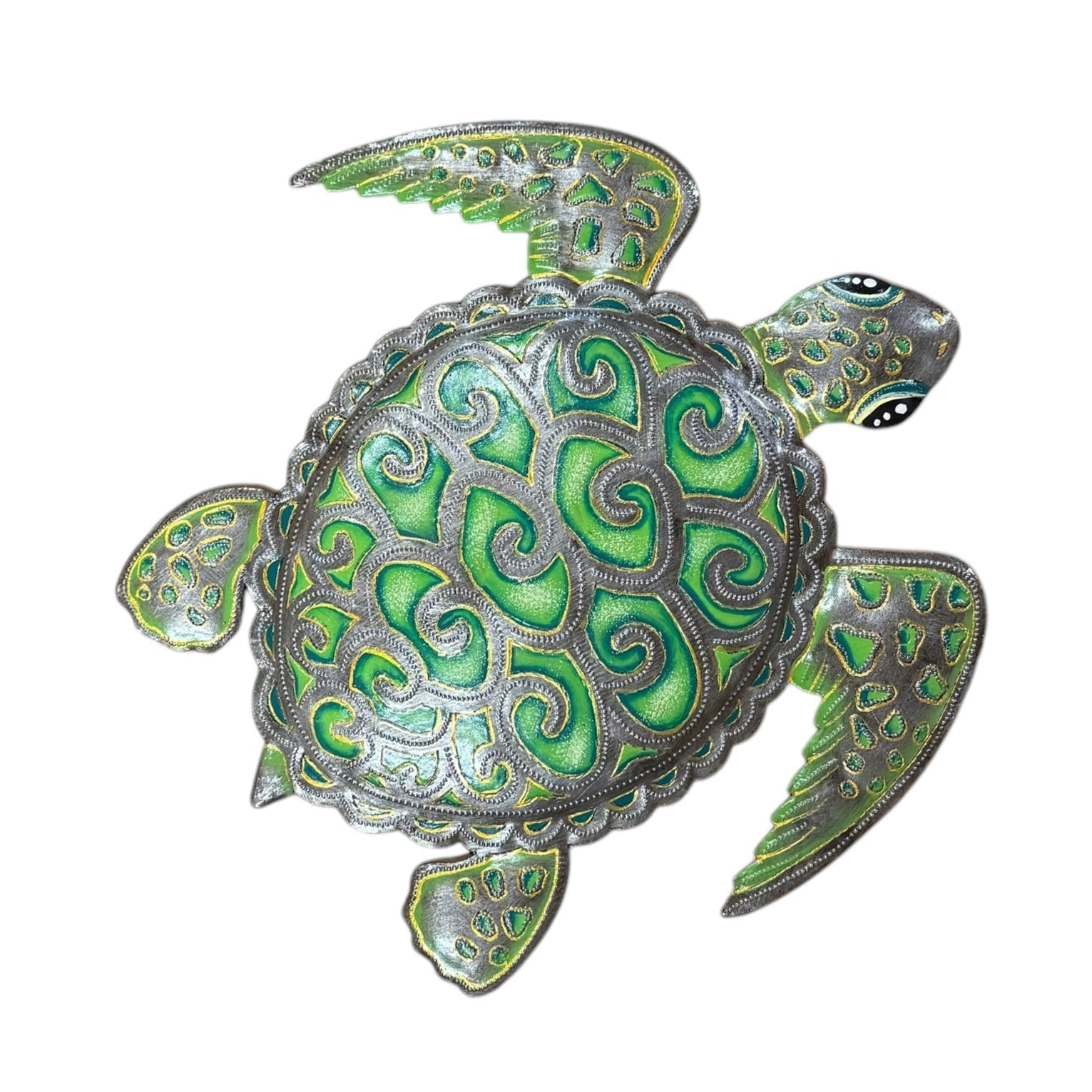 One of the most celebrated Haitian art forms, steel drum art is always a winner! Each piece is hand crafted from recycled 55 gallon drums using only a hammer and a few small tools that resemble railroad spikes. Each piece is a true work of art!