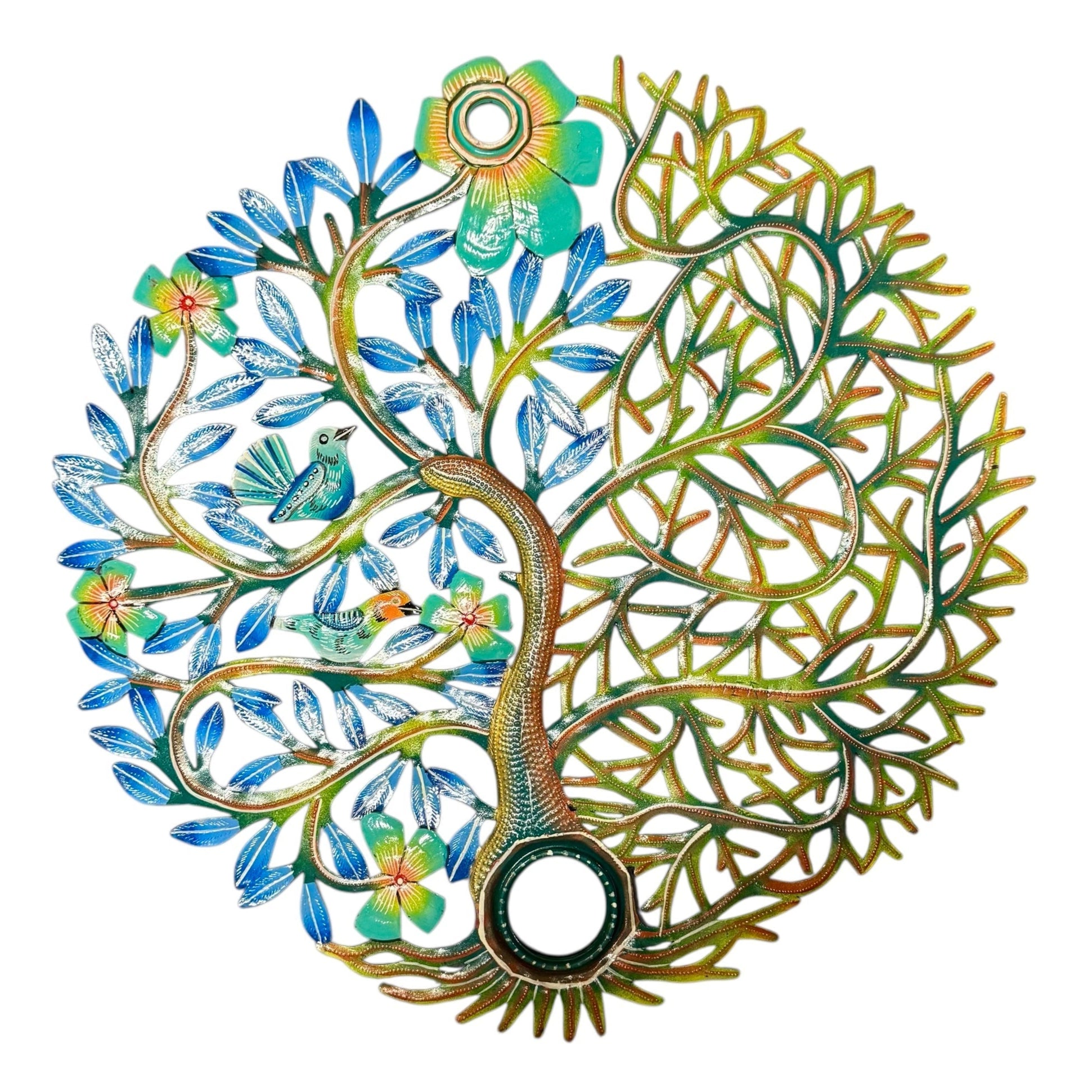 Since the 1950's Haitians have been flattening 55 gallon oil drums and using these steel canvases to cut, pierce, and bend intricate images and sculptures. This 34” wide metal piece is a perfect addition to any home and makes a great gift too!