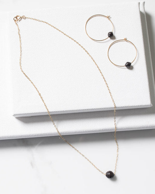 *One bead necklace* a handcrafted, black paper bead suspends on a delicate 16" 14k gold filled chain. This necklace is perfect for layering or makes a statement all on its own. It is ideal for a meaningful everyday accessory.