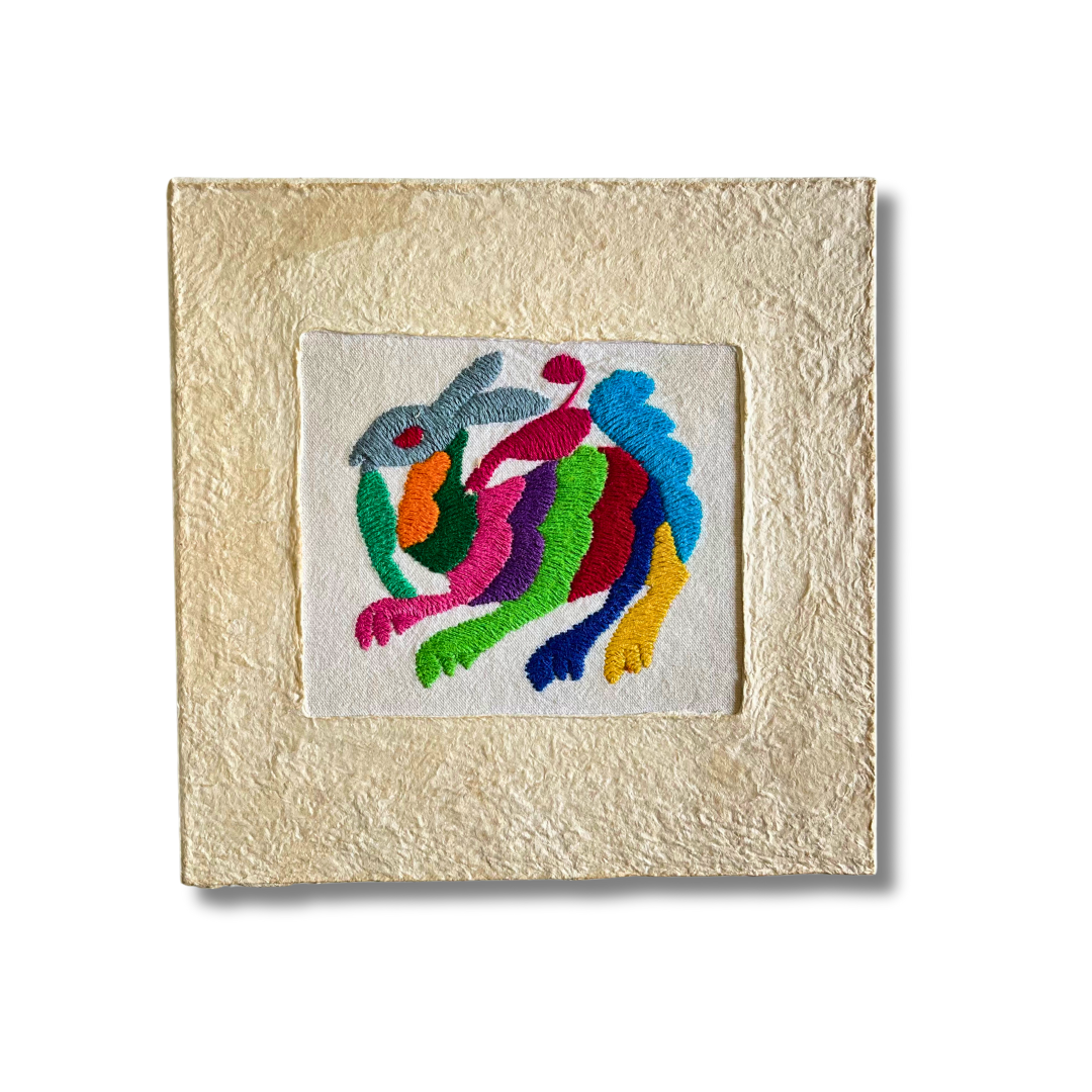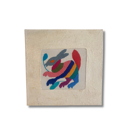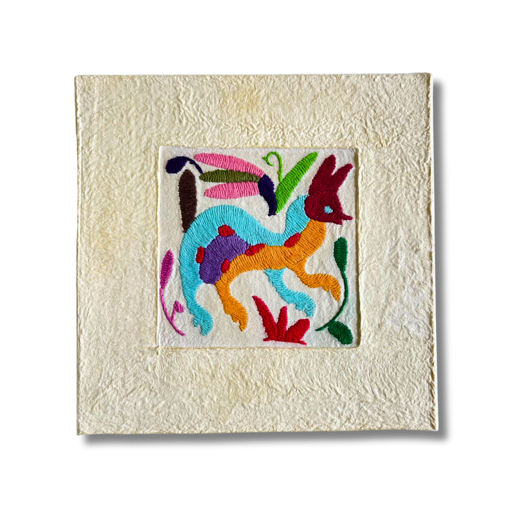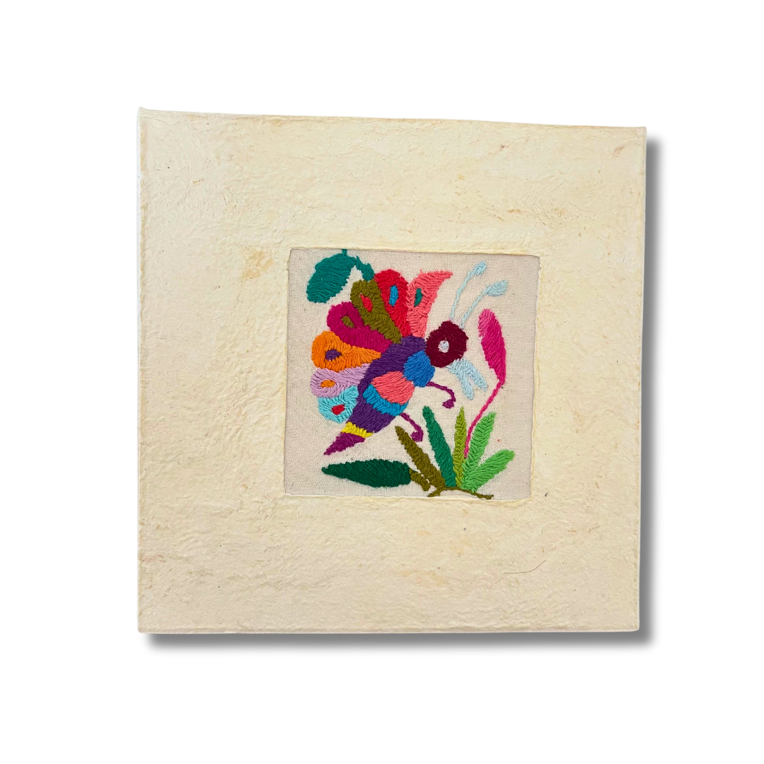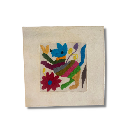 Add a touch of authentic charm to your home with our beautiful Otomi Amate embroidered art, carefully handcrafted by our skilled artisan Maribel in the highlands of Mexico. This 10"x10" piece is a vibrant display of the unique Otomi embroidery, full of intricate details that tell a story of tradition and craftsmanship.