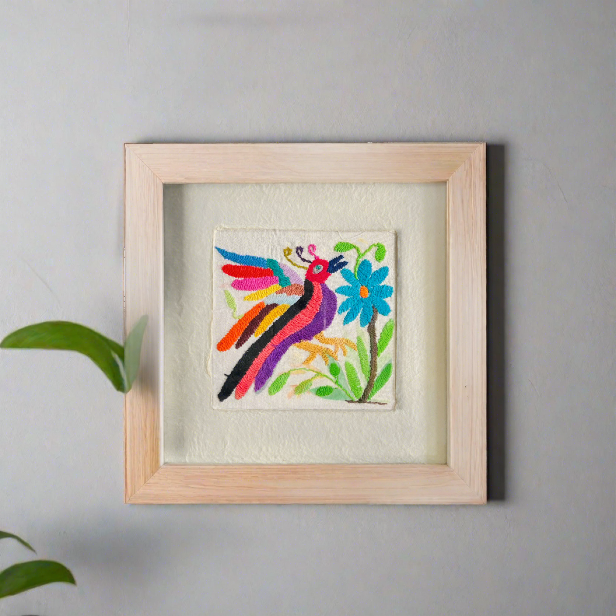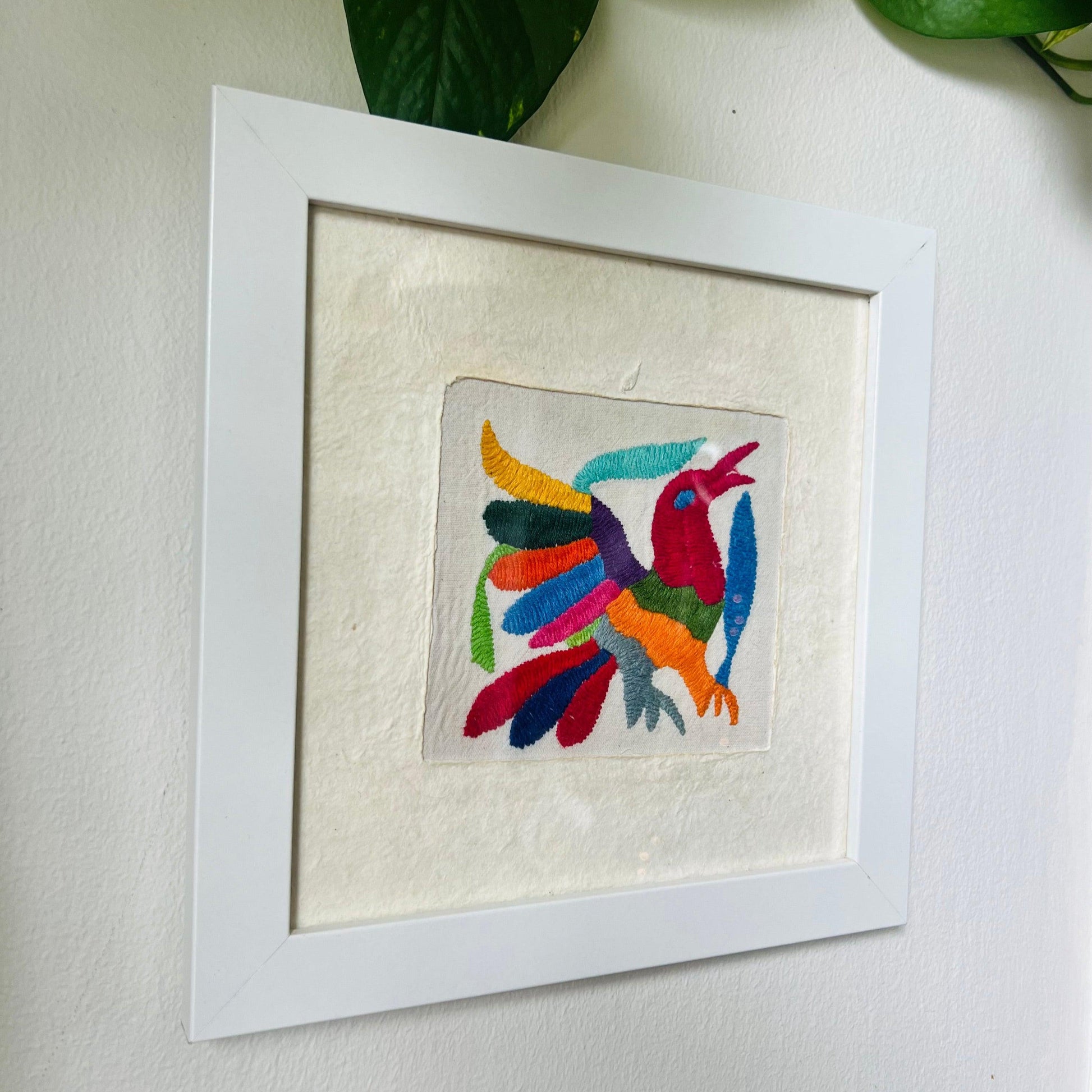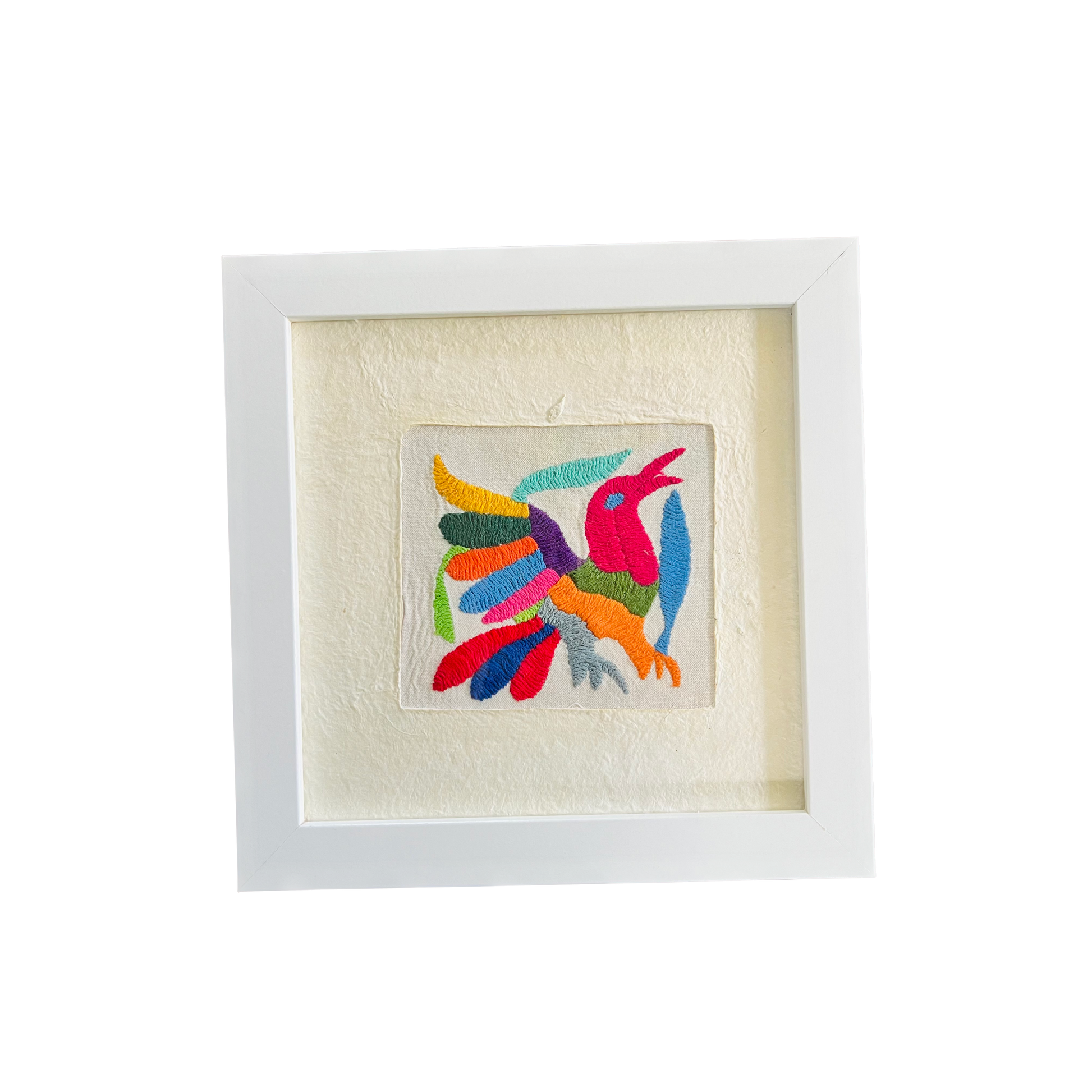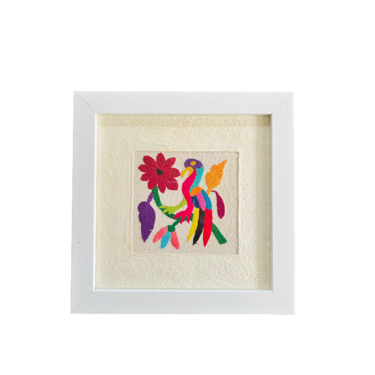 Add a touch of authentic charm to your home with our beautiful Otomi Amate embroidered art, carefully handcrafted by our skilled artisan Maribel in the highlands of Mexico. This 10"x10" piece is a vibrant display of the unique Otomi embroidery, full of intricate details that tell a story of tradition and craftsmanship.
