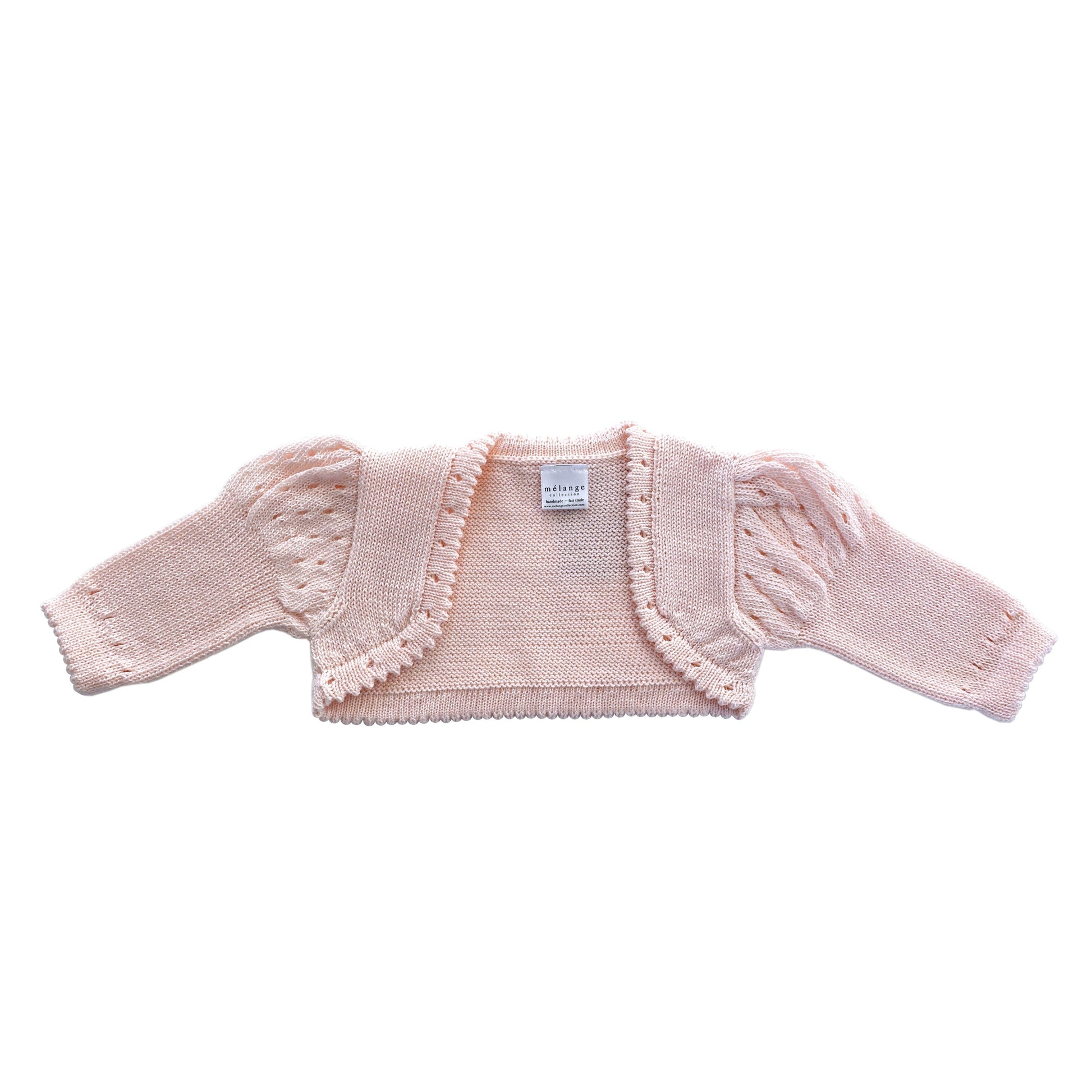 Knit pink bolero cardigan with puff sleeves. Coordinates perfectly with Lamb dress (KC782).