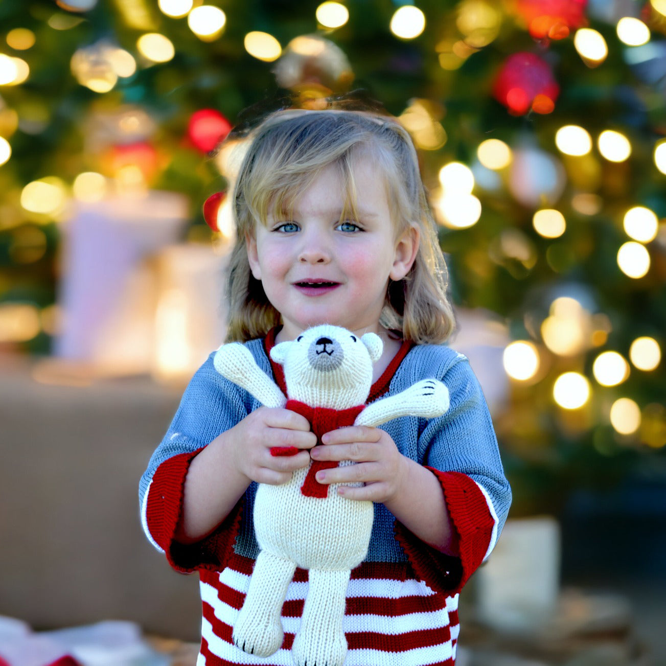 The perfect cuddly companion for all ages! Experience the enchantment of the Arctic with this adorable and huggable polar bear. Crafted with love and attention to detail, this knit toy captures the charm and beauty of these majestic creatures, bringing joy and warmth into your life.