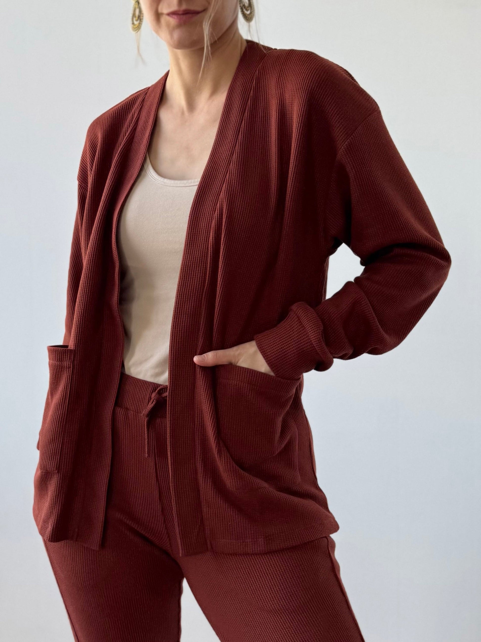 RILEY waffle knit cardigan in Cherrywood