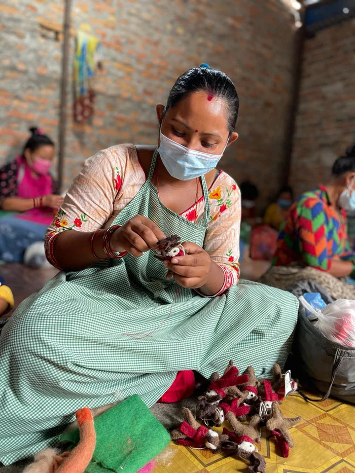 Set in a valley surrounded by the beautiful Himalayan mountains, a group of 60 talented women use traditional felting techniques to create our sweet little ornaments. Each ornament has been meticulously crafted, dyed and assembled using the finest wool and eco-friendly dyes.