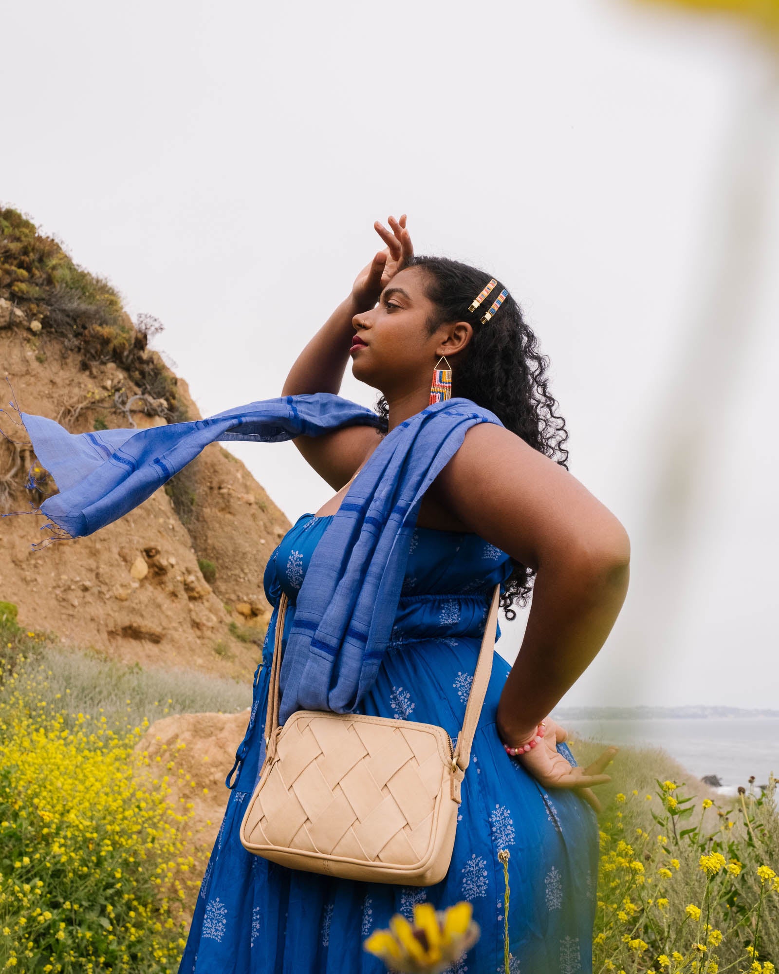 This genuine leather woven Sandstone Crossbody from India is both practical and stylish with its adjustable strap, interior zipper pocket, exterior slip pocket, and zipper closure. Keep all your essentials safe and secure anytime you’re on the go. This soft, comfortable, and versatile light camel/beige colored bag with cotton lining will be adorable to style this season. Every purchase provides safe jobs with fair wages for women in areas of extreme poverty in India.