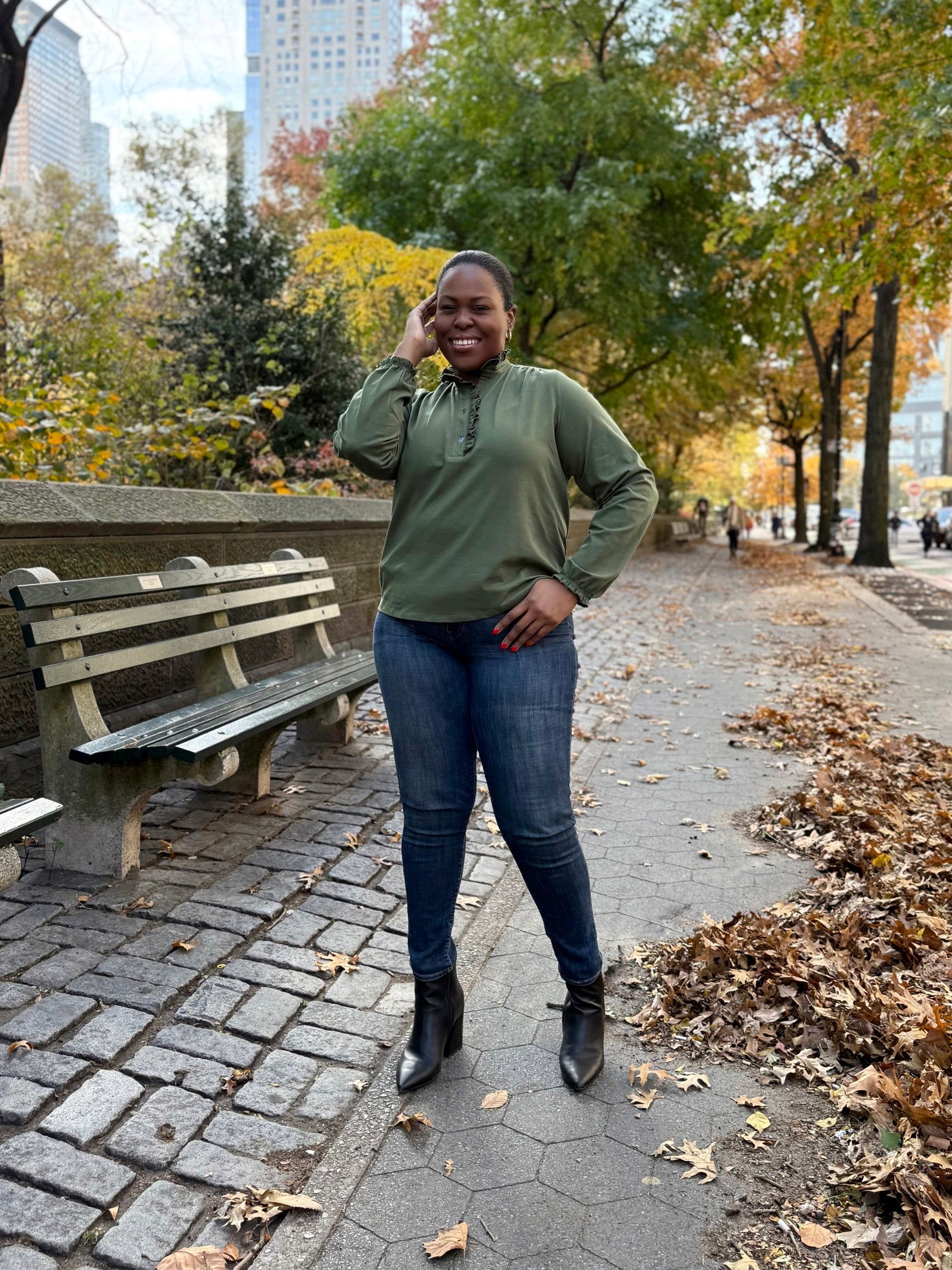 - Fatima wears XL: Height 5'8" - Bust 44" - Hip 49"