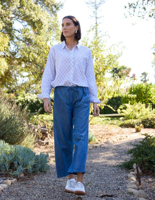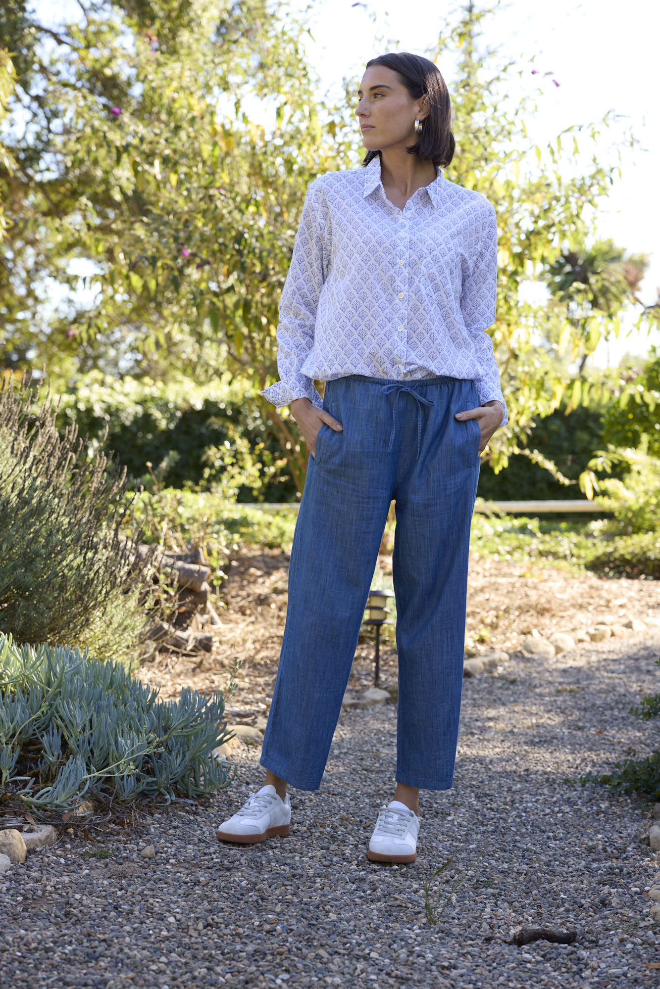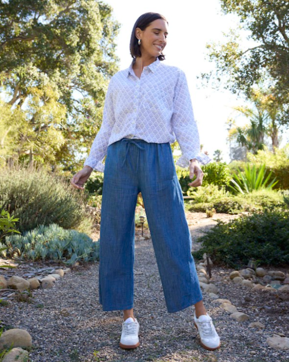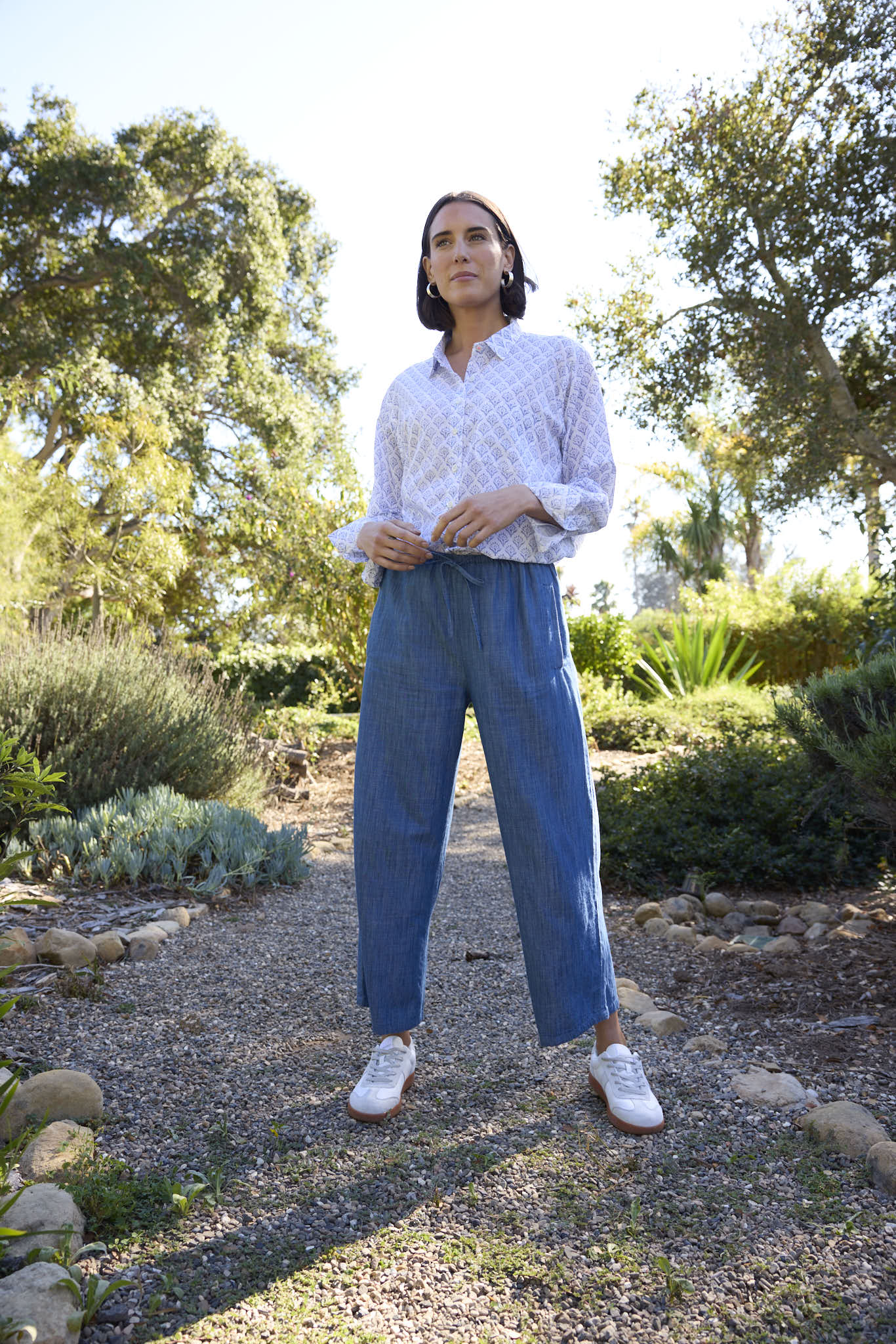 The eco-friendly, sustainable shore pant is the quintessential bottom that's both comfortable and cool. With its modern cropped length, relaxed fit, high rise, and elastic waist, this go-to favorite brings effortless, elevated style to everyday.Cameron is 5'8" and wearing a size XS/S.