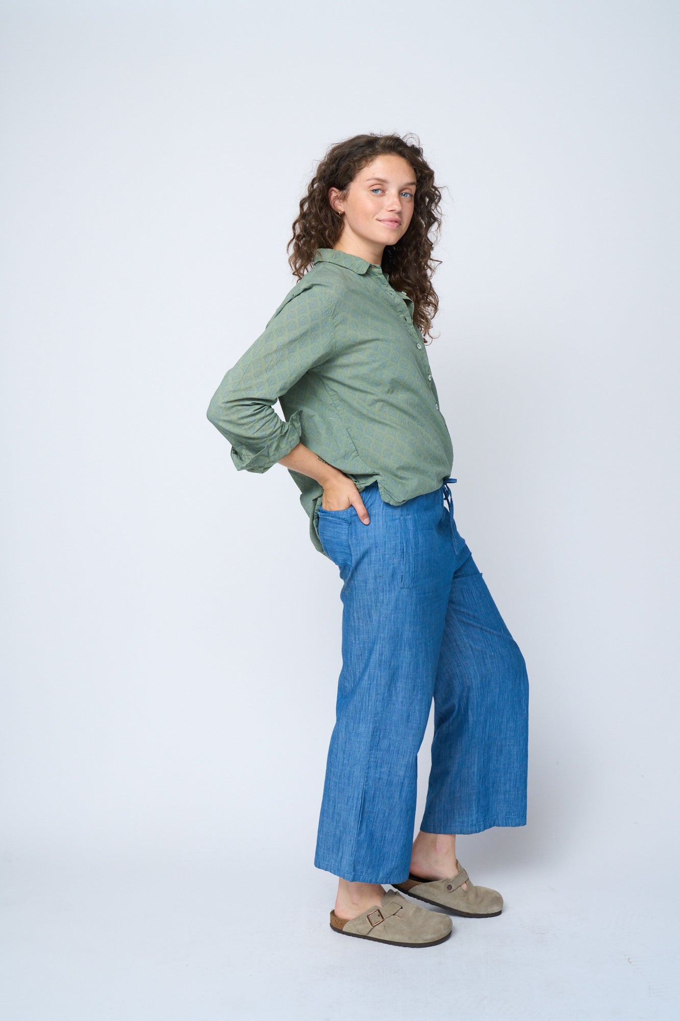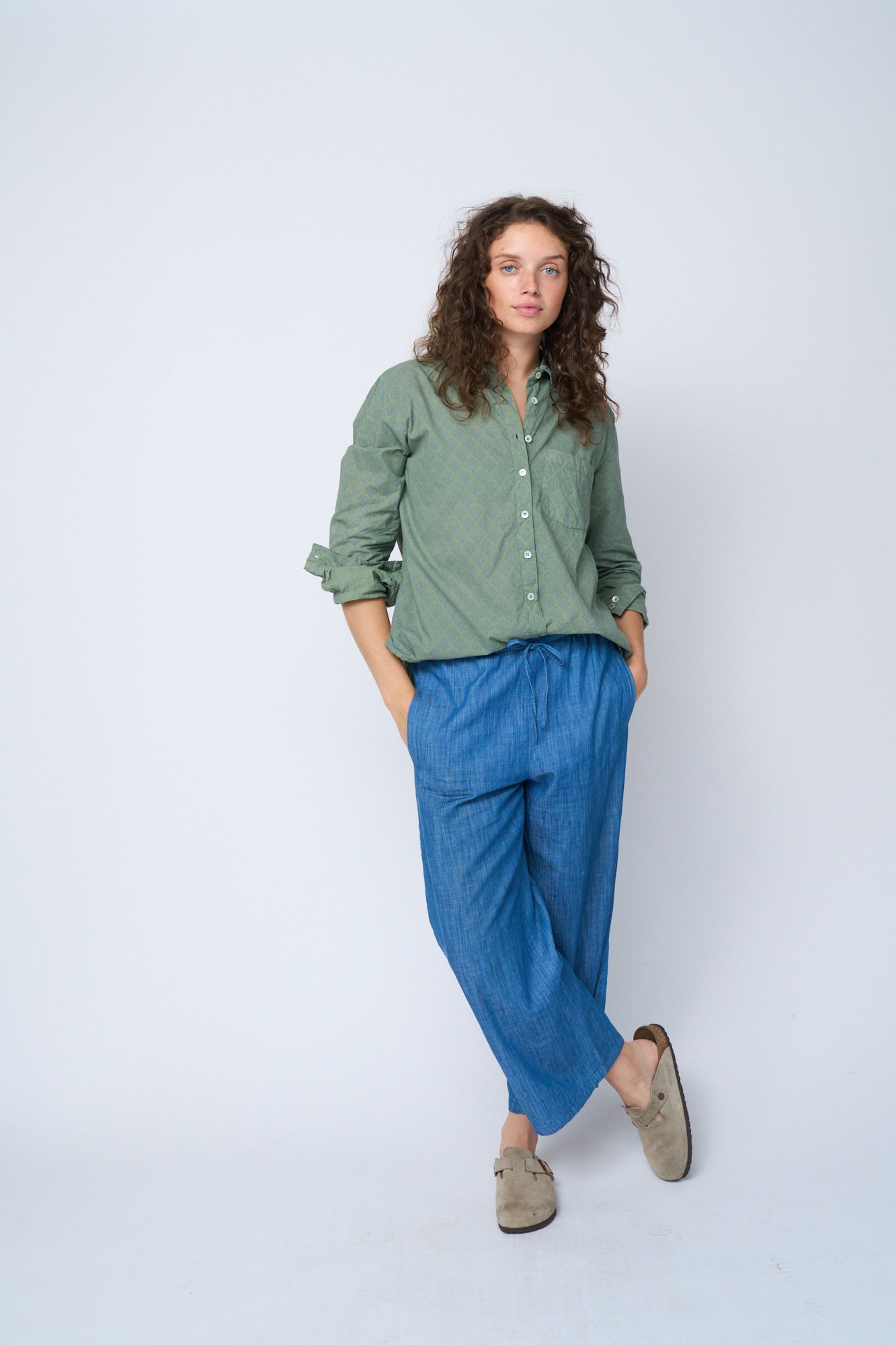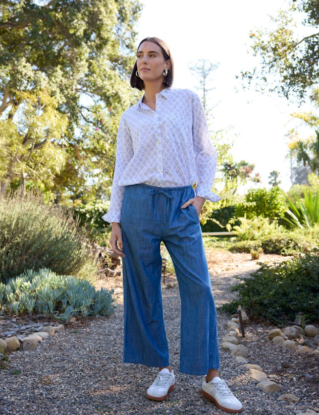 The eco-friendly, sustainable shore pant is the quintessential bottom that's both comfortable and cool. With its modern cropped length, relaxed fit, high rise, and elastic waist, this go-to favorite brings effortless, elevated style to everyday.Cameron is 5'8" and wearing a size XS/S.