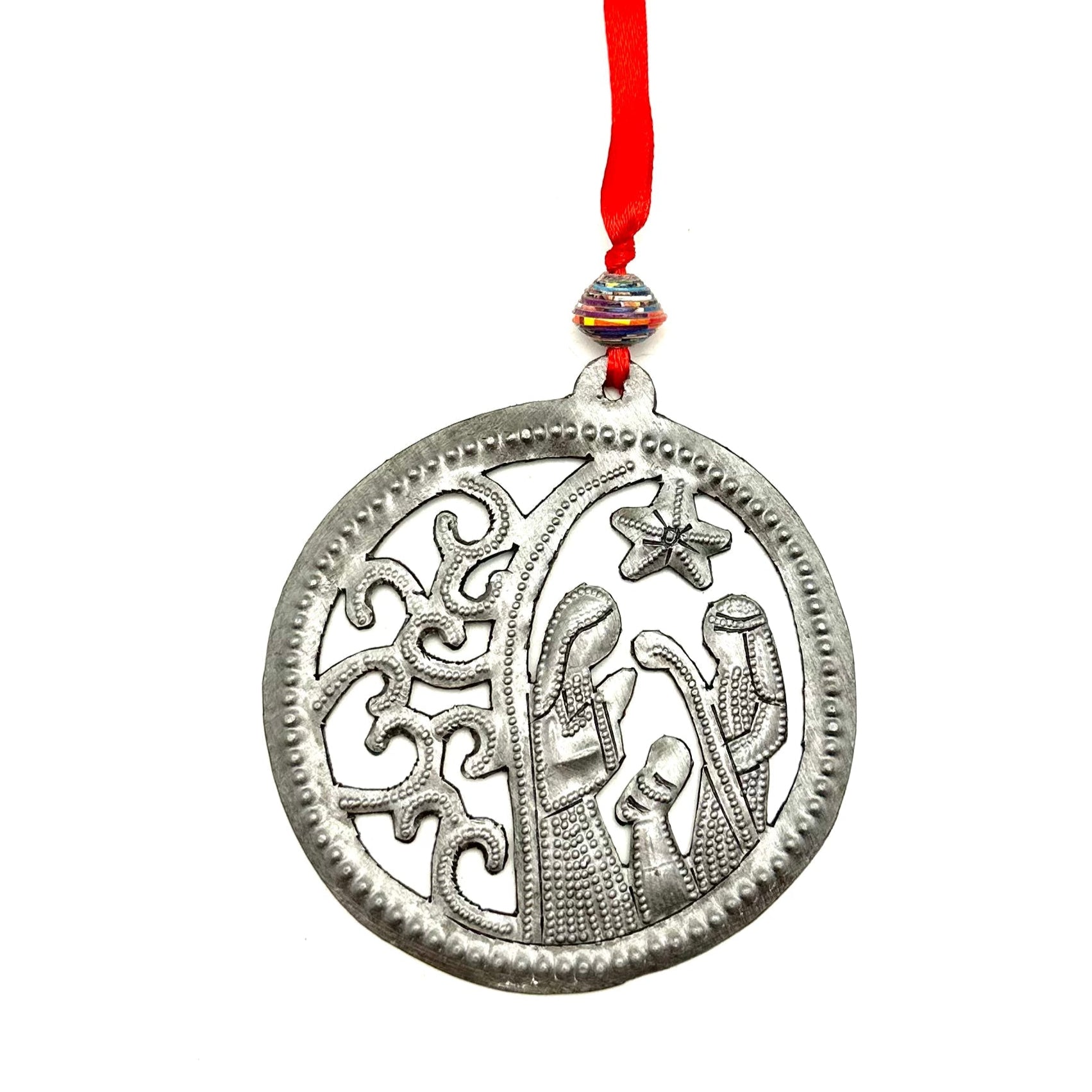 Made from recycled steel drums and hand detailed using a hammer and a steel spike. A beautiful addition to your holiday decorations!