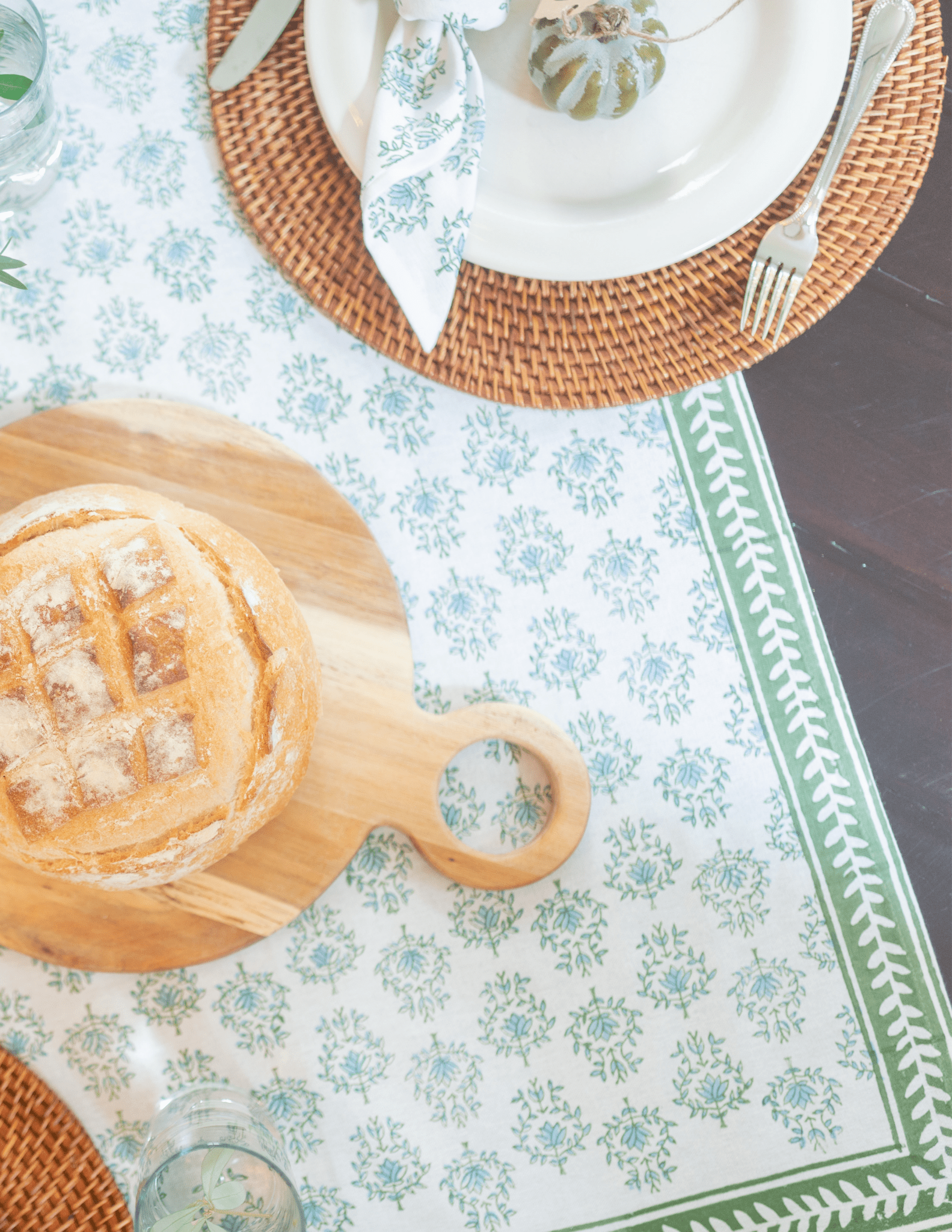 The amount being paid to the artisans per piece creates real impact: 1 Tea Towel = 2.2 pounds of rice 1 Table Runner = 1 month's school tuition 1 Full Tablescape = 1 month's rent for a home Mended partners closely with IJM’s local team in South Asia to make sure each survivor artisan receives holistic care—support that extends beyond employment to include counseling, safe housing, and community resources. This partnership allows Mended’s artisans to thrive, knowing that their well-being and healing are prioritized as much as the beautiful textiles they create.