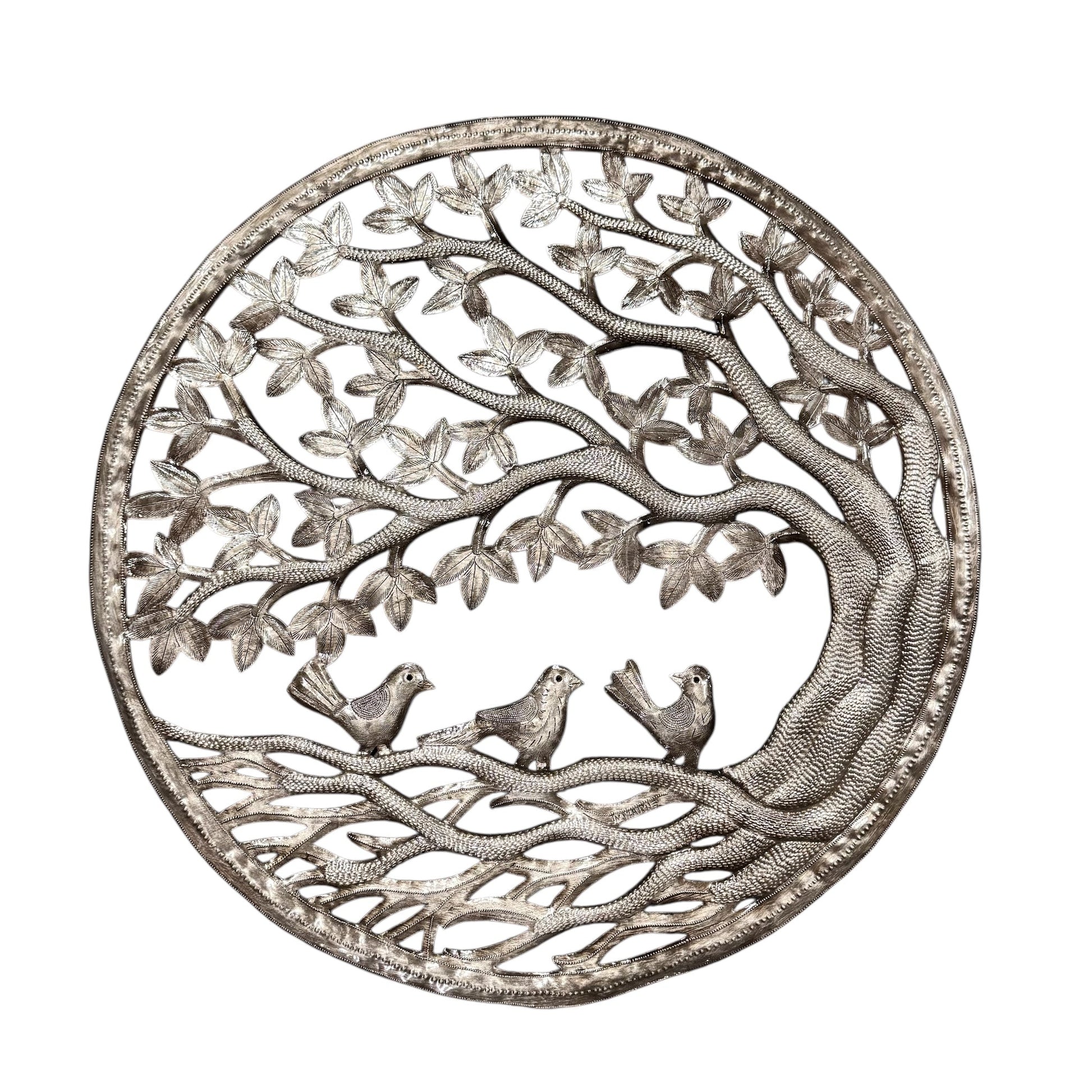 One of the most celebrated Haitian art forms, steel drum art is always a winner! Each piece is hand crafted from recycled 55 gallon drums using only a hammer and a few small tools that resemble railroad spikes. Each piece is a true work of art!