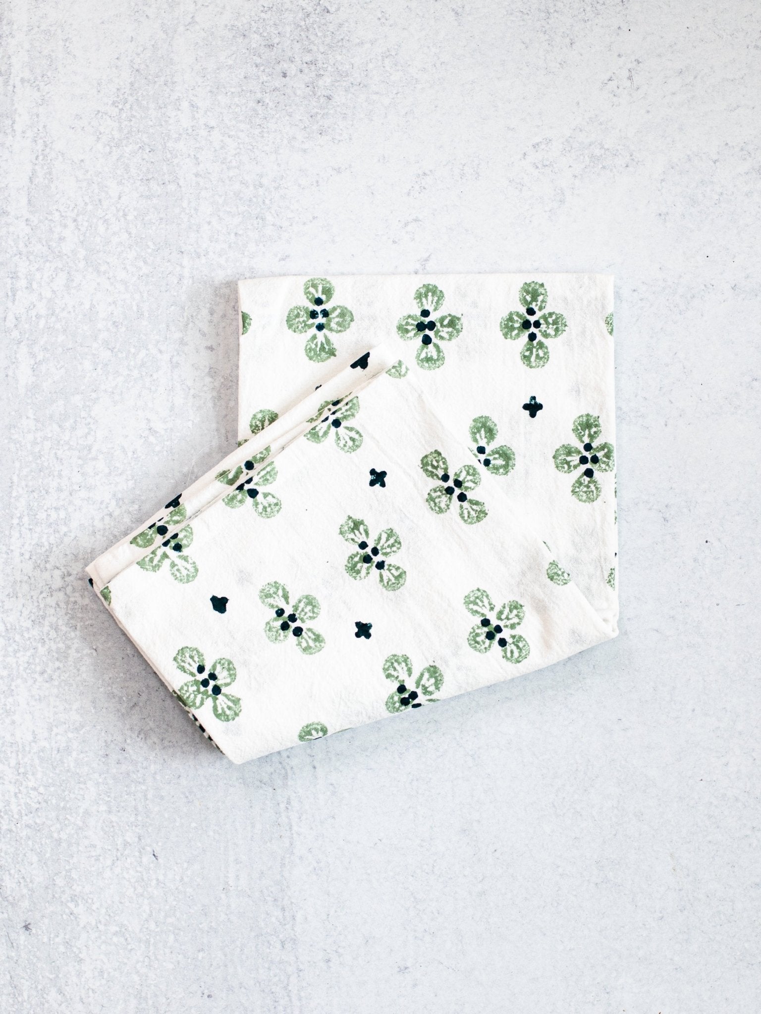 Tea Towel (Ivory) - Dogwood Blossom, Sage & Midnight
