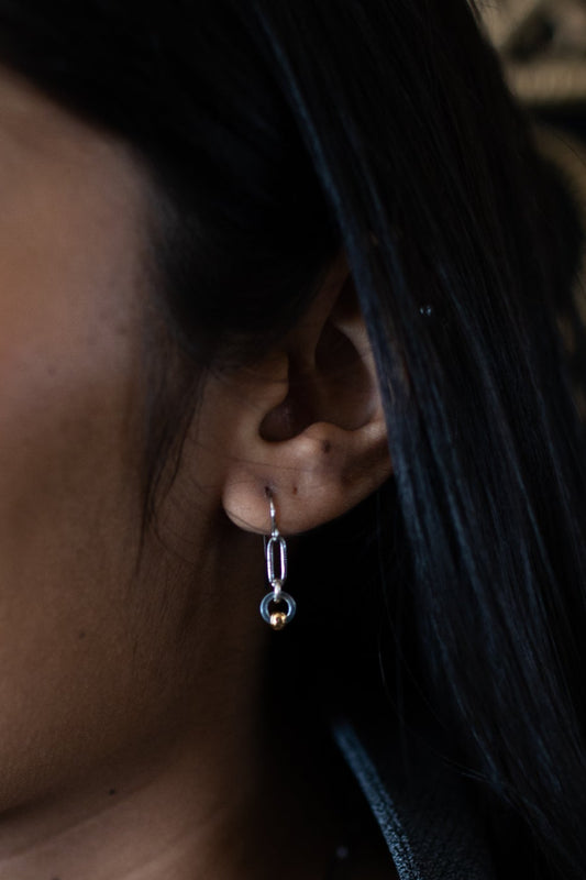 Sowing Seeds Earrings | Repurposed Auto Split Rings & Gold Plated Crimp Beads | Stainless Steel Ear Wire