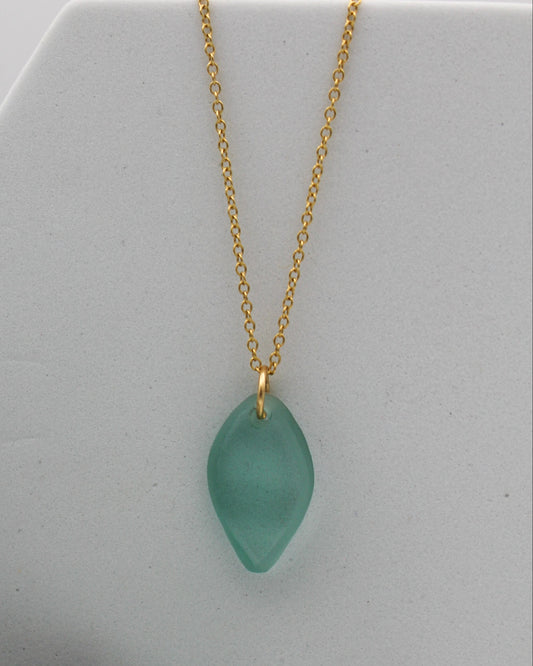Visions Aqua Glass Necklace | Repurposed Automotive Windshield Glass | Adjustable Gold Plated Chain